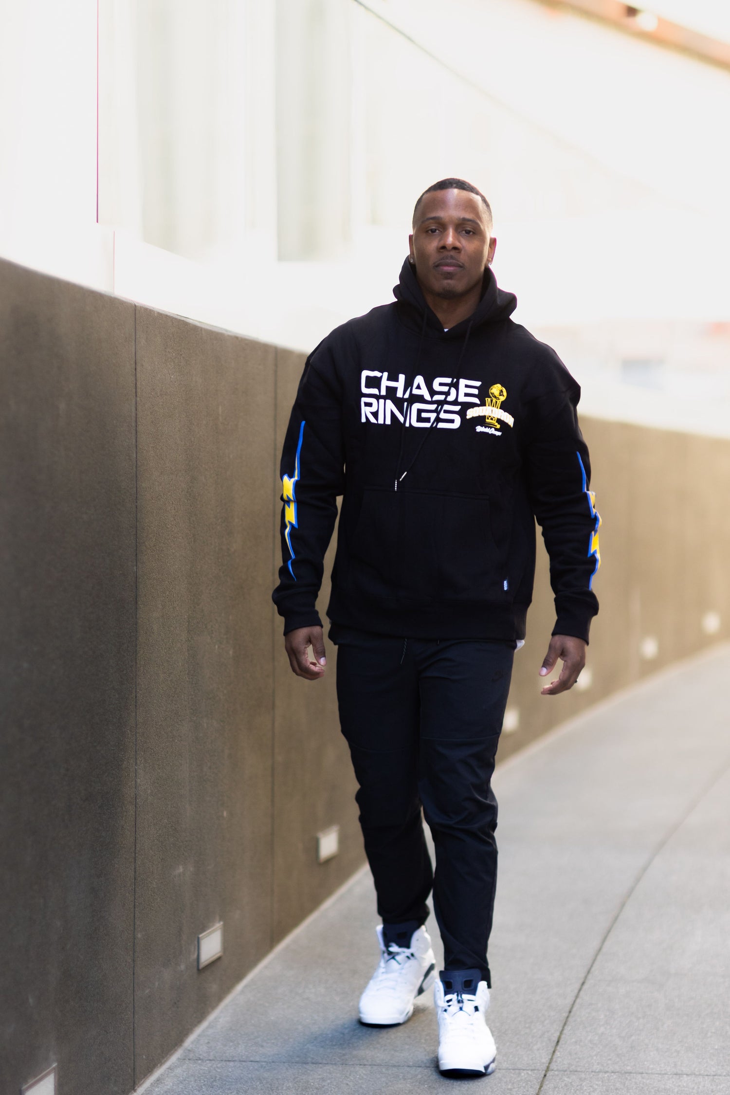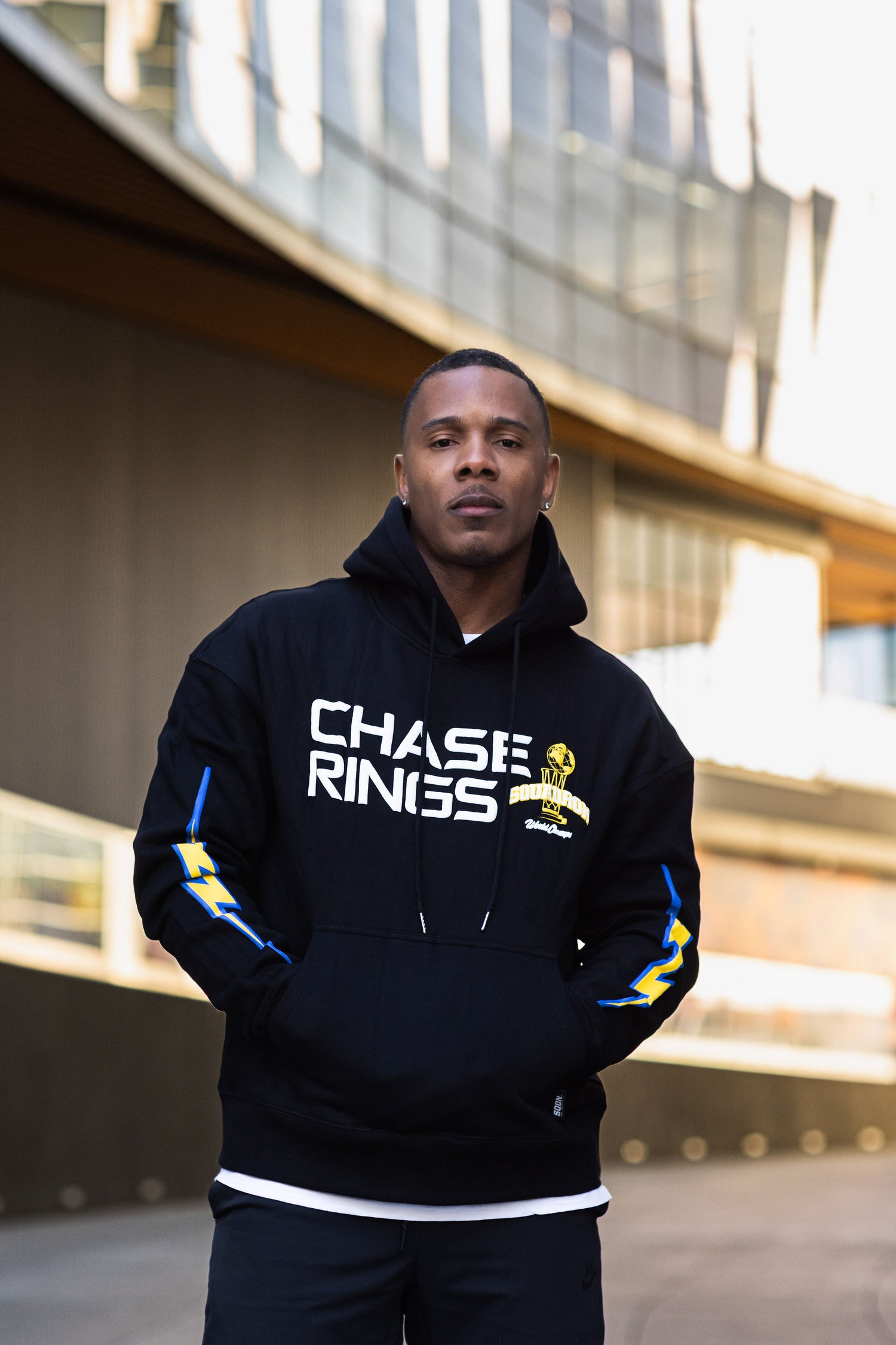 A special puff printed graphic hoodie inspired by Chase Arena and the Golden State Warriors! In sports, its all about winning championships and rings. Let's go DubNation!